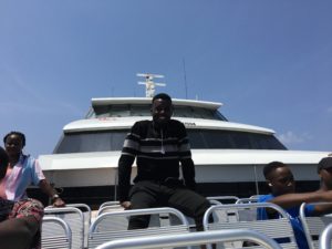一緒に船に乗って旅行に行ったときの写真です。