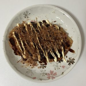 丸くないたこ焼き。 一人暮らしの我が家に たこ焼き器があるはずもなく笑 丸くないですが、美味しいです。