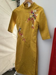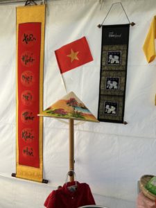 アオザイやノンラーなどが展示されていて、日進市在住のベトナム人の方がベトナムの紹介をしていました。
