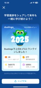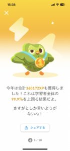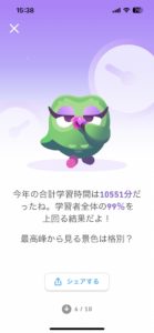 今年の2月末からDuolingoを始めましたが、こんな通知が来ました。