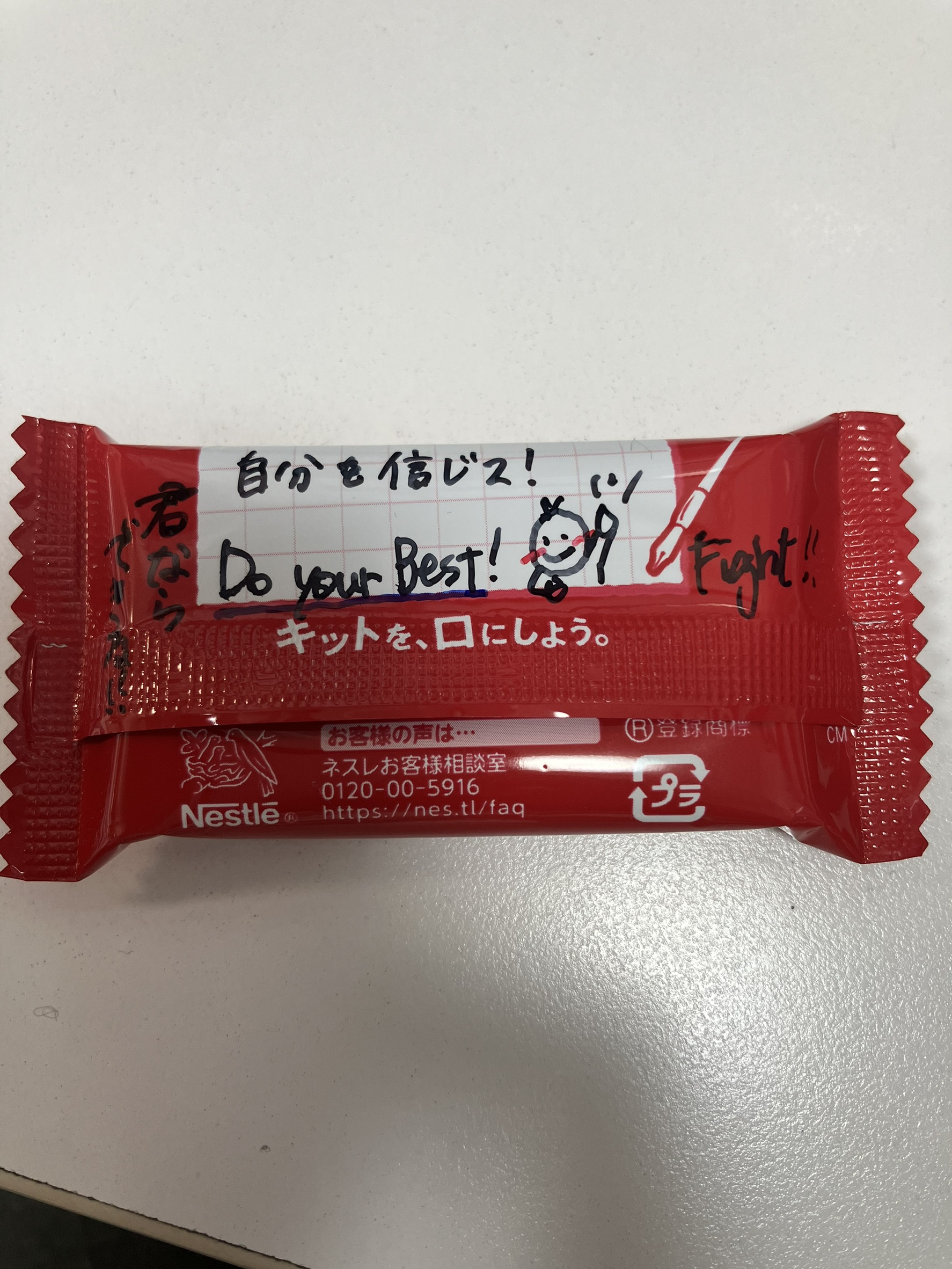 受験生には「自分を信じて」というメッセージとともにを渡しました。