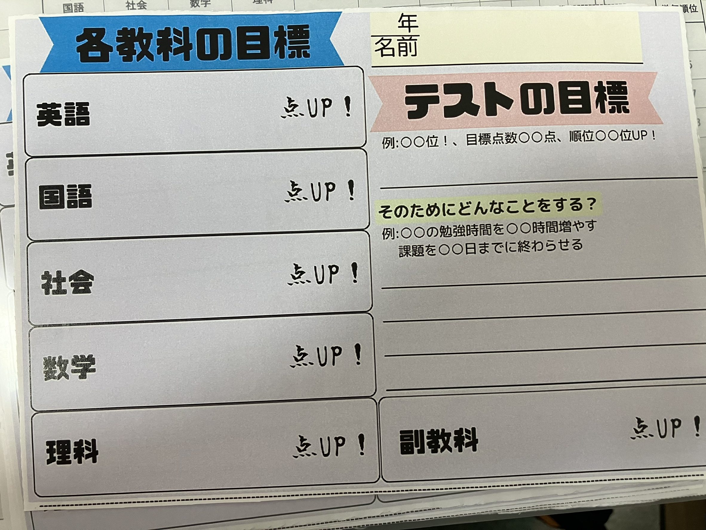 さて、テスト前には目標を書いてもらいましたね。