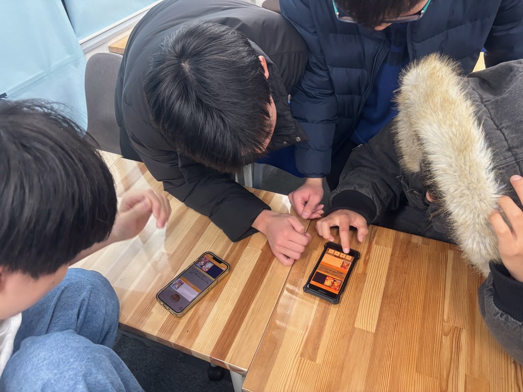 中3男子たちがスマホゲームを