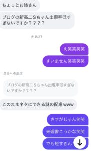 お馴染み新高2SちゃんからDMが。
